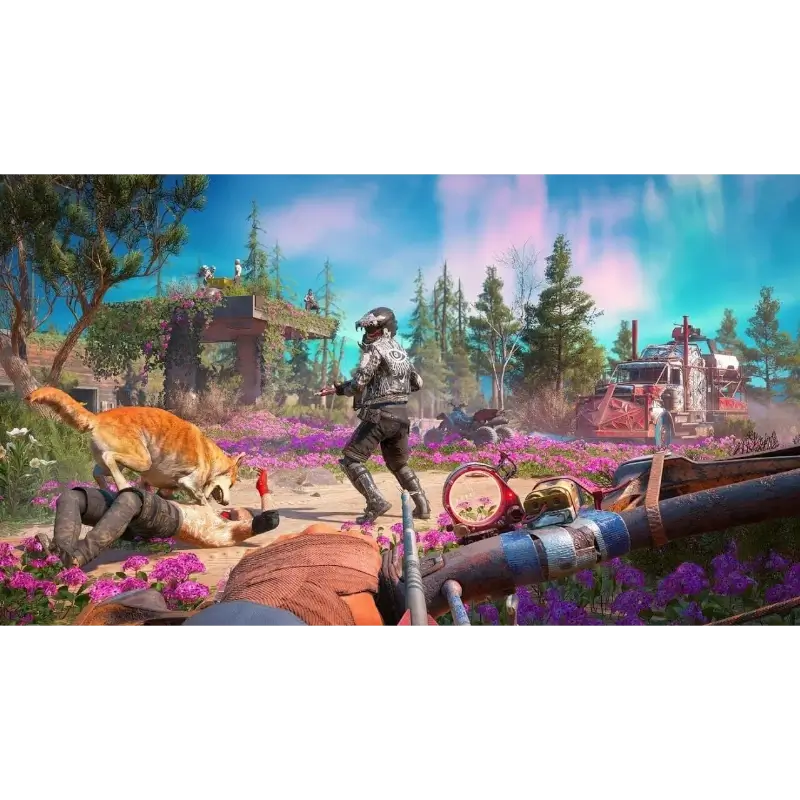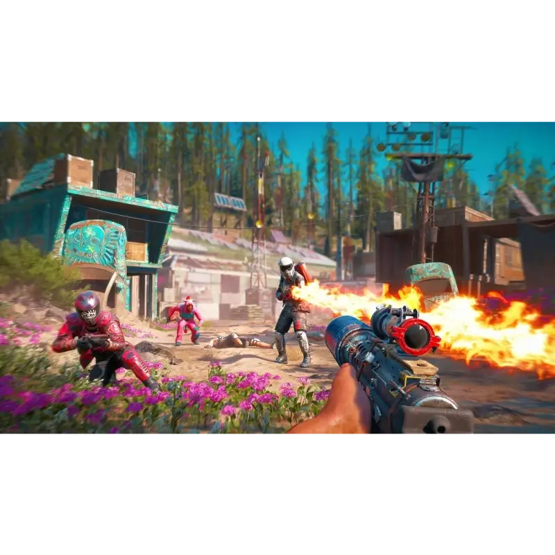 Far Cry New Dawn (Superbloom Edition) PS4 é um jogo de ação em mundo aberto pós-apocalíptico com conteúdos exclusivos, combate intenso, exploração e missões envolventes.