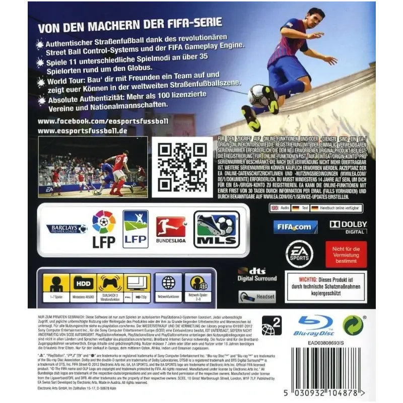 Dos criadores da galardoada franquia EA SPORTS FIFA Football, e inspirado nos estilos e estrelas do futebol de rua de todo o mundo, FIFA Street é o jogo de futebol de rua mais autêntico alguma vez feito. Desfrute de uma experiência única e divertida onde tudo, desde os ambientes, ao equipamento e à música, é fiel ao desporto e à sua cultura.