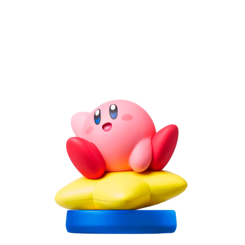 A figura Amiibo Kirby Collection apresenta o adorável protagonista Kirby rosa em uma pose clássica e alegre. Kirby, com sua forma redonda e suave, está sentado em uma estrela amarela brilhante, que parece estar flutuando, representando sua habilidade icônica de voar montado em estrelas. Sua expressão amigável e olhos grandes e brilhantes dão um toque de simpatia e carisma à figura. A paleta de cores é vibrante, com o rosa do corpo de Kirby contrastando com o amarelo intenso da estrela, tudo sobre uma base sólida que garante estabilidade à peça. É uma miniatura charmosa e detalhada, capturando perfeitamente o espírito leve e aventureiro do personagem dos jogos.