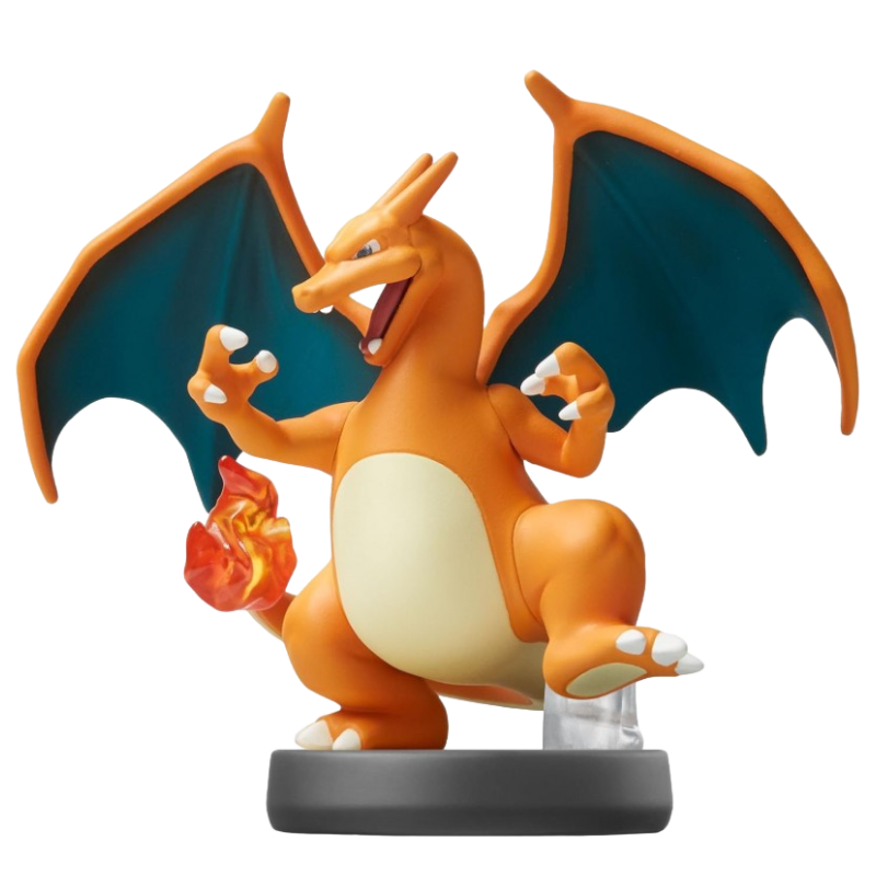 A figura amiibo Super Smash Bros do Charizard é uma figura detalhada que retrata o famoso Pokémon em uma pose dinâmica, com asas abertas e cauda flamejante. A escultura destaca as texturas das escamas, enquanto a pintura vibrante em laranja e amarelo realça sua aparência icônica. Os olhos expressivos refletem sua determinação, e a base é estilizada para se integrar ao universo de Super Smash Bros., tornando-a uma peça atraente para colecionadores e fãs.