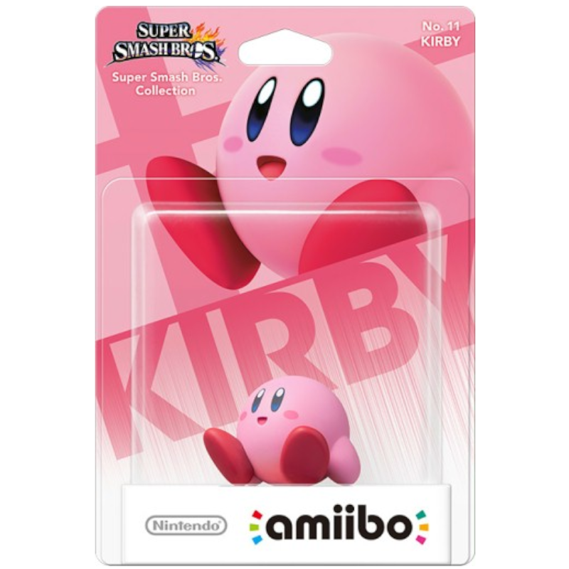A figura amiibo Super Smash Bros do Kirby (número 11) apresenta o icônico personagem rosa em uma pose alegre. Kirby tem um corpo arredondado e vibrante, com grandes olhos expressivos e um sorriso amigável. A figura destaca detalhes como suas pequenas mãos e pés, além de sua boca característica. Montada sobre uma base sólida decorada com elementos do jogo, a peça é bem acabada e é uma adição adorada por fãs e colecionadores.