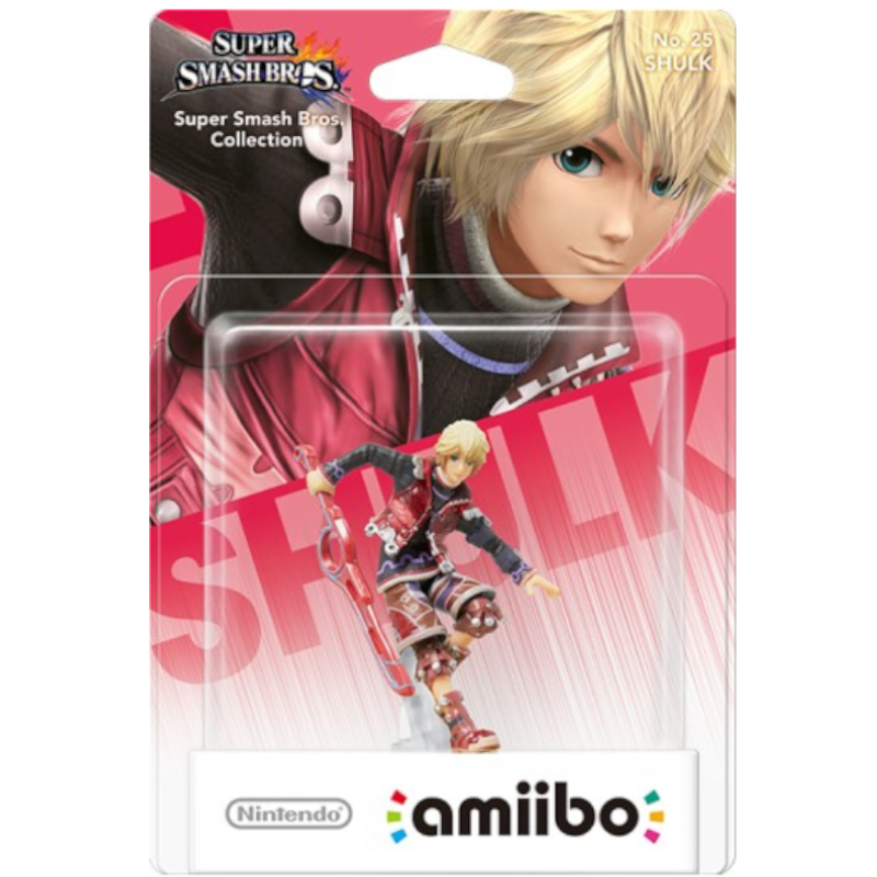 A figura amiibo Super Smash Bros do Shulk representa o personagem principal do jogo Xenoblade Chronicles. Ele é esculpido em uma pose dinâmica, com uma expressão determinada no rosto. Shulk possui cabelos longos e loiros, com um destaque na parte da frente que cai sobre sua testa. Seu traje é uma combinação de armadura leve e vestes mais soltas, predominantemente em tons de vermelho, cinza e marrom, refletindo seu estilo de combate. Ele segura sua famosa espada Monado em uma mão, que brilha com uma aura azul, simbolizando seus poderes especiais. A base do amiibo é redonda e sólida, permitindo que a figura se mantenha firme em qualquer superfície. O acabamento é detalhado, com texturas que destacam os elementos do traje e a espada, tornando-o um item de coleção atraente para os fãs de jogos e de Xenoblade.