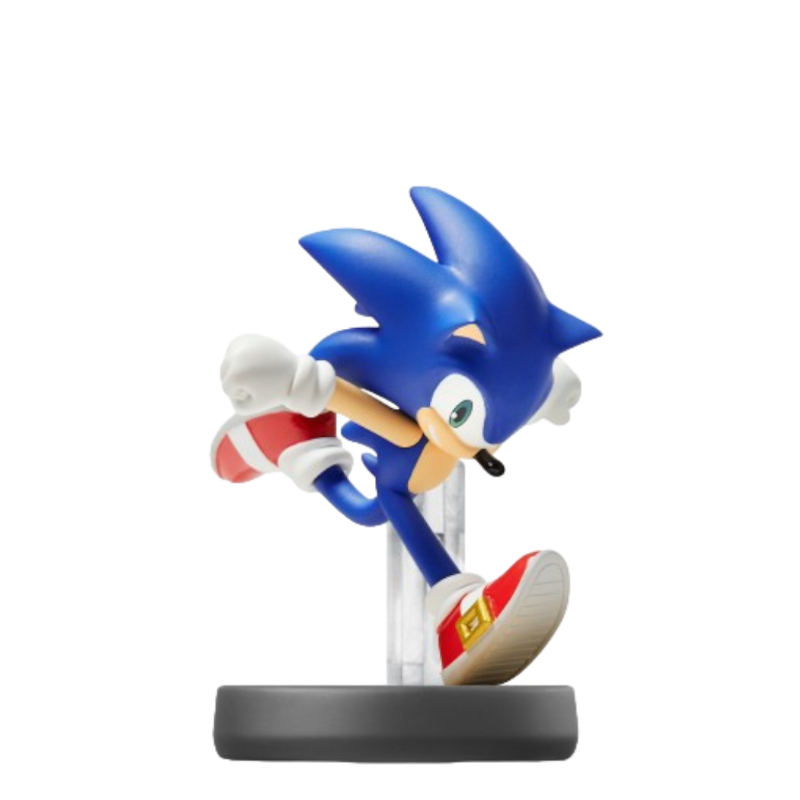 A figura Amiibo Super Smash Bros do Sonic(número 26), apresenta o icônico personagem em uma pose dinâmica, refletindo sua velocidade característica. Sonic está retratado em uma posição levemente agachada, como se estivesse se preparando para uma corrida. Seu design é fiel ao estilo dos jogos, com detalhes vibrantes e cores chamativas. O corpo é principalmente azul, com o rosto expressivo em um tom mais claro, olhos grandes e um sorriso que transmite sua personalidade enérgica. Ele usa suas clássicas luvas brancas e sapatos vermelhos com detalhes brancos. A base da figura é sólida e apresenta um acabamento limpo, garantindo que o foco permaneça no personagem. A qualidade da escultura e da pintura destaca a aparência característica de Sonic, tornando-o um item de colecionador atraente tanto para fãs de videogames quanto para entusiastas da franquia.