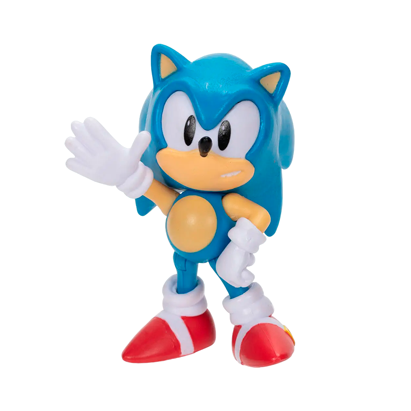 Esta figura de 6 centímetros é feita de plástico durável e apresenta um design preciso e detalhado. Sonic está vestido com sua roupa clássica, com seu lenço vermelho, sapatos amarelos e botas brancas. Ele também tem seu sorriso cativante e olhos brilhantes.