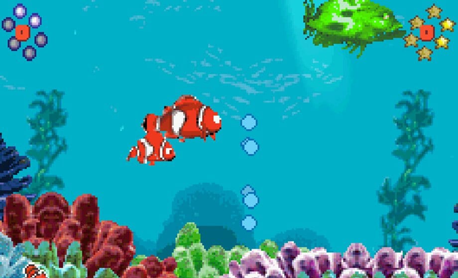 A versão Game Boy Advance de Finding Nemo adapta o filme Pixar como um jogo de acção de scrolling lateral com elementos de exploração e puzzle de luz.