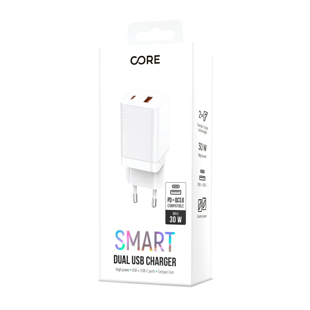 FOREVER CORE SMART PD + QC 3.0 CARREGADOR DE PAREDE 1 X USB + 1X TYPE-C 30W (BRANCO)