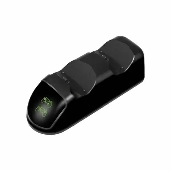 Plataforma de carregamento para dois controles Dualshock 4 com indicadores LED para saber o status da carga.
