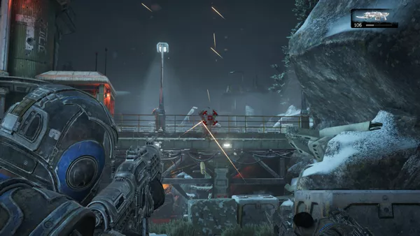 A jogabilidade depende da familiar mecânica de atirador de cobertura. As coberturas dinâmicas agora incluem escudos de boom, escudos de carne e cápsulas que podem disparar e, às vezes, conter um inimigo. Os sinalizadores de vento do jogo desempenham um papel agora, como granadas e outros projéteis, mas também o movimento do personagem, é afetado durante as tempestades. O principal oponente é o Swarm, com tipos de personagens como Carriers, Drones, vários tipos de Juvies, Pouncers, Snatchers (principalmente um mini-chefe) e muito mais. Eles usam armas semelhantes, pois também contam com a tecnologia COG e empregam táticas semelhantes às dos humanos. Normalmente há um grupo de três membros e ao lado de Fenix outro personagem, geralmente Del ou Kait, pode ser controlado por um segundo jogador humano. Ao jogar sozinho, todos os outros personagens são controlados pela IA. Como de costume, apenas duas armas podem ser transportadas, com armas clássicas como o Lancer com sua motosserra. Existem agora duas versões das armas, usando a mesma munição, bem como dois tipos de rifles de precisão, o Hammerburst, o Marzka MK1 e mais. O Buzzkill é um novo tipo de arma que dispara lâminas de serra. Outras novas armas são o Dropshot, EMBAR e Enforcer. Uma pistola e granadas também podem ser usadas, juntamente com ataques corpo a corpo e execuções. Agora é possível deslizar sobre a cobertura e chutar os inimigos do outro lado. A munição é relativamente escassa, então muitas vezes as armas largadas pelos inimigos precisam ser apanhadas.