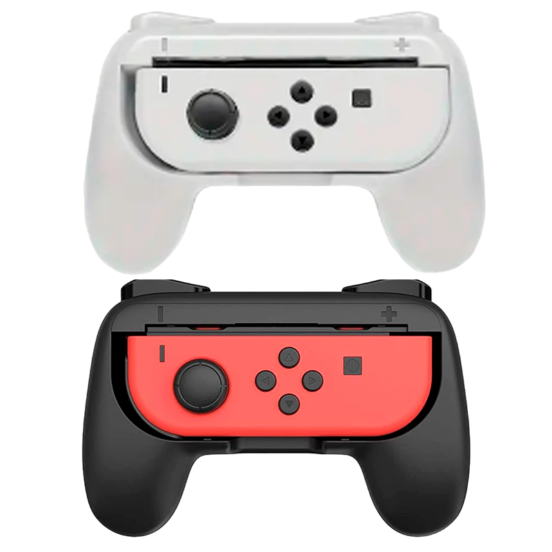 Design ergonômico – O formato do punho do controlador oferece aderência e conforto superiores ao segurar o Joy-Con na posição lateral. As bordas curvas da alça do controle mantêm suas mãos mais relaxadas durante o jogo, evitando tensão e dor ao segurar o pequeno controle remoto por muito tempo