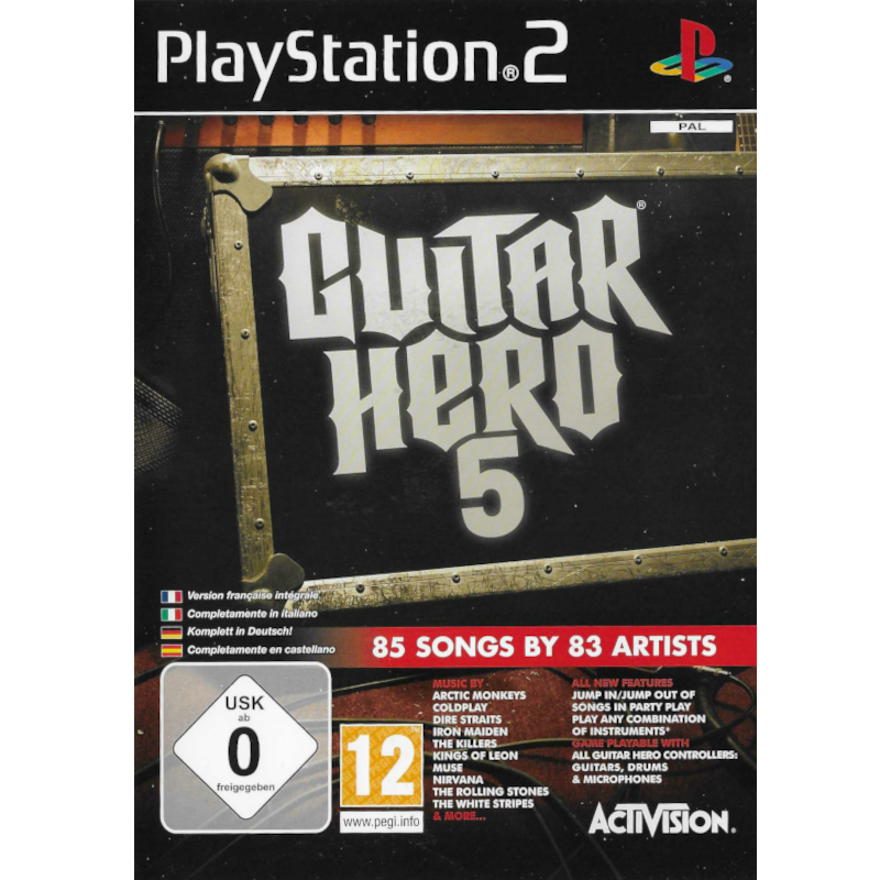 Guitar Hero 5 é um jogo da série Guitar Hero da franquia de videogames, lançado no dia 1 de Setembro de 2009 para PlayStation 2, Xbox 360, PlayStation 3 e Nintendo Wii. O jogo conta com o novo modo “Party Play”, onde o jogador poderá trocar de instrumento e de dificuldade no meio da música.