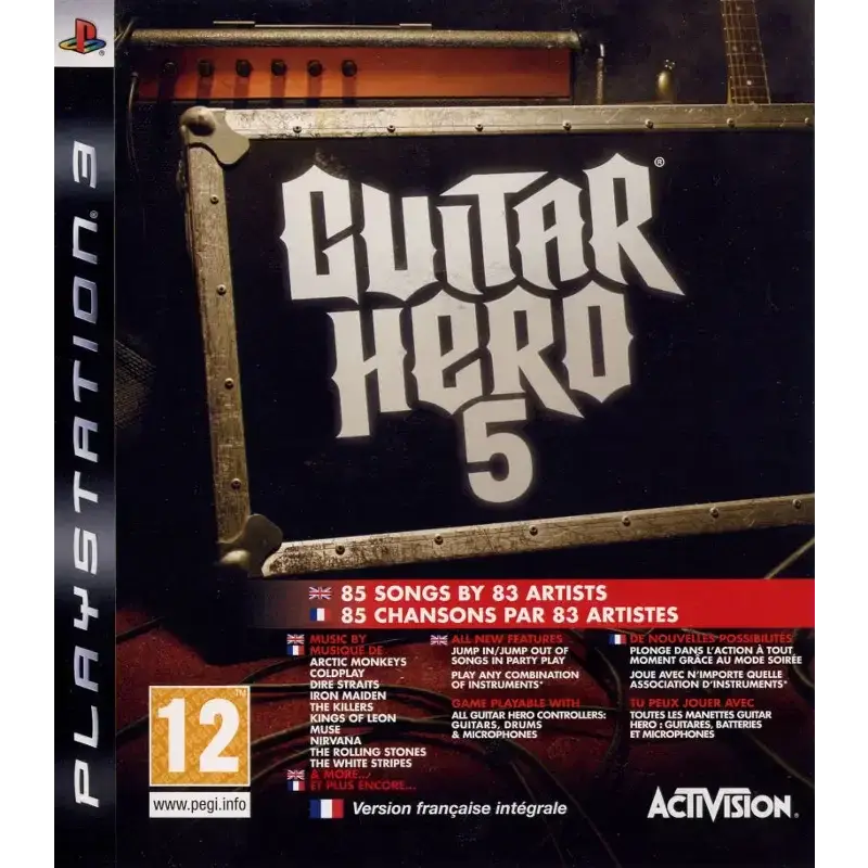 Guitar Hero 5 é o quinto jogo principal da série de ritmos musicais. Semelhante ao título anterior, Guitar Hero: World Tour, o foco é uma experiência de banda, com uma guitarra de chumbo e baixo, bateria e vozes. O título está disponível de forma autónoma ou em conjunto com os instrumentos.