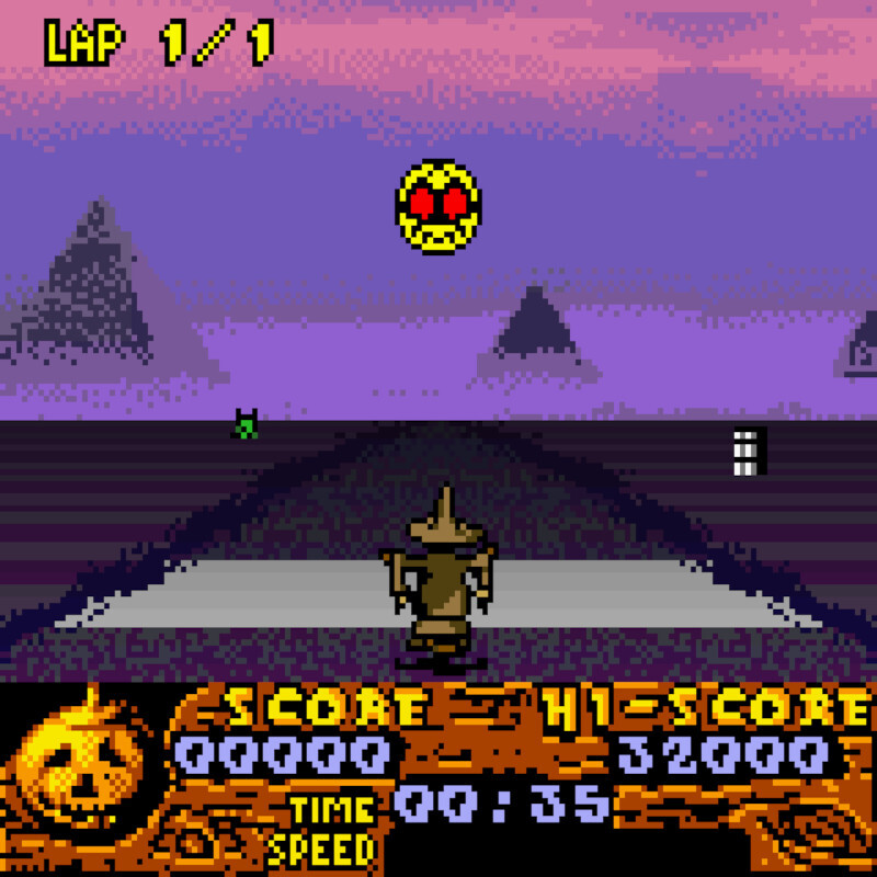 Gráficos e Som: Apesar das limitações gráficas do Game Boy Color, “Halloween Racer” consegue criar uma atmosfera envolvente com sprites bem detalhados e cores vibrantes. A trilha sonora e os efeitos sonoros são temáticos, com músicas que lembram trilhas de filmes de terror e sons assustadores, contribuindo para a imersão do jogador no mundo do Halloween.