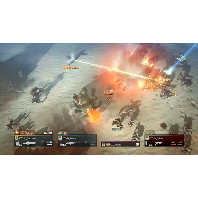 Em Helldivers para PlayStation 4, podes jogar sozinho ou cooperativamente com até quatro jogadores, localmente ou online. O jogo inclui missões variadas, ambientes hostis e uma ampla gama de armas, equipamentos e veículos que podem ser personalizados para cada missão. A dificuldade é elevada, exigindo coordenação e planeamento cuidadoso, e a mecânica de “friendly fire” adiciona tensão extra às batalhas.