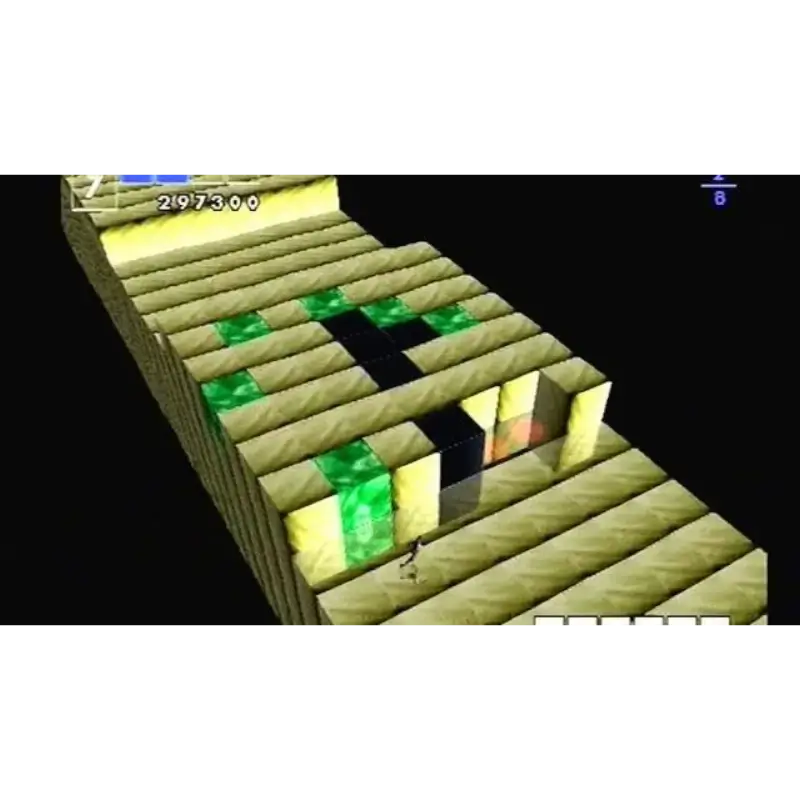 Cada estágio é constituído por 4 partes, cada uma com 3 ondas de cubos que vem pra cima do personagem. Pra avançar é preciso sobreviver as 12 ondas, caso perca é possível recomeçar do início do estágio em que perdeu, MAS toda pontuação feita é zerada, o que deixa um pouco frustrante já que o game joga na sua cara um número de QI baseado em sua pontuação ao final da partida. Dai você pode terminar o jogo com um QI 7 ao invés de 160 que teria se não perdesse nenhuma fase. Coisa bem difícil por sinal, já que a dificuldade tem um salto absurdo a partir do stage 7.