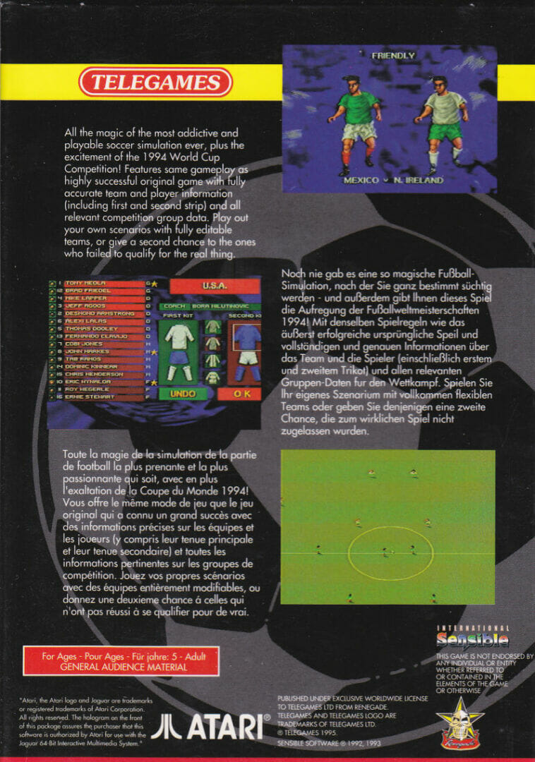 Lançada juntamente com o Campeonato do Mundo de 1994, esta foi a primeira versão do Sensible Soccer a apresentar equipas de fora da Europa.
