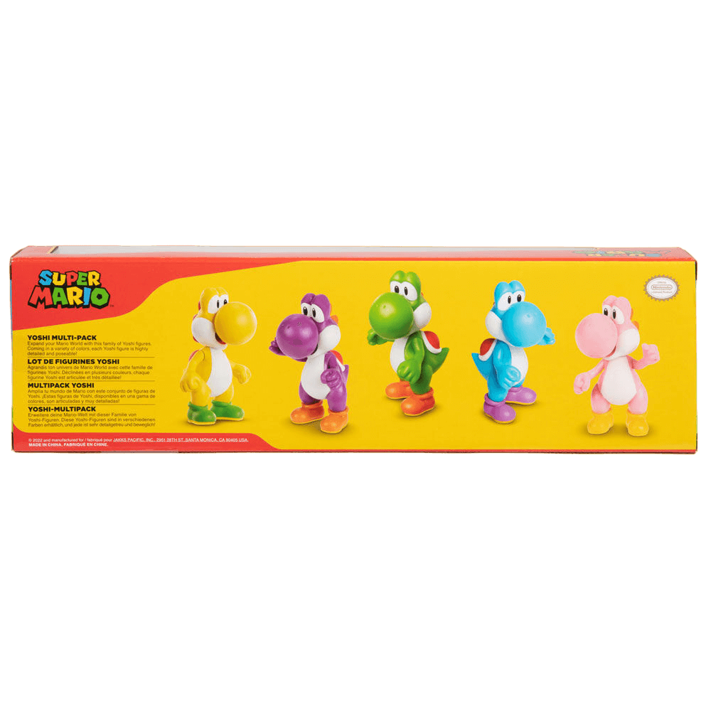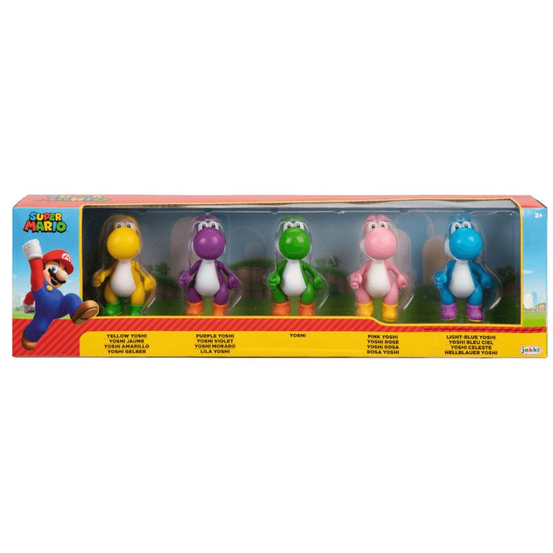 Este pack de 5 figuras de Yoshi traz os personagens favoritos dos fãs do Super Mario para a sua casa. Com detalhes realistas e 3 pontos de articulação, estas figuras são perfeitas para brincar ou colecionar.