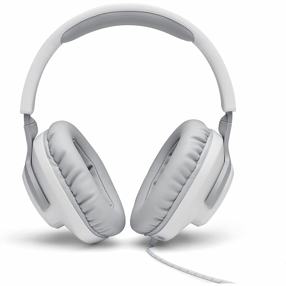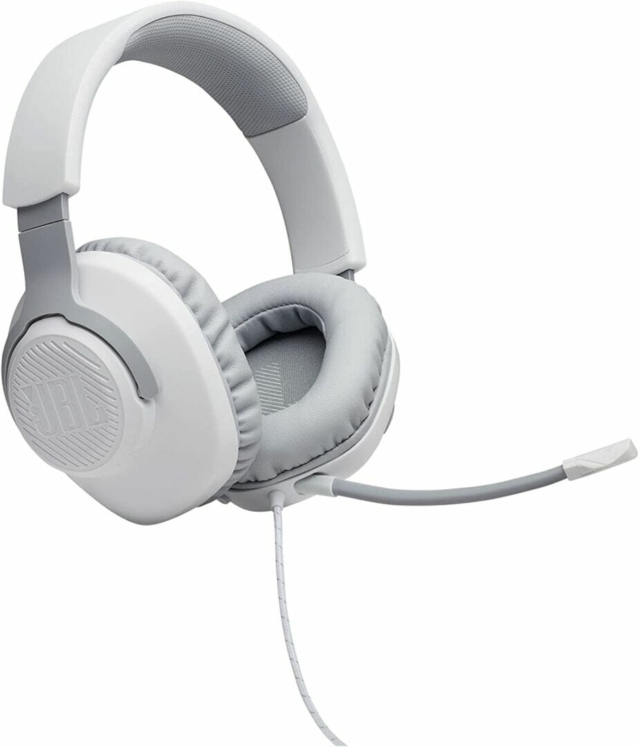 O headset JBL Quantum 100 permite agrupar as tropas e os oponentes com clareza. O microfone boom direcional, removível e com foco na voz vem equipado com recursos de silenciamento.