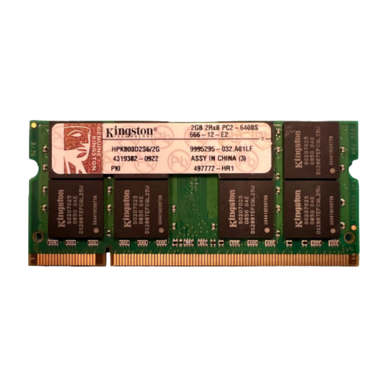 O módulo de memória Kingston 2GB 2Rx8 PC2-6400S é um componente de memória RAM para computadores, especificamente projetado para laptops.