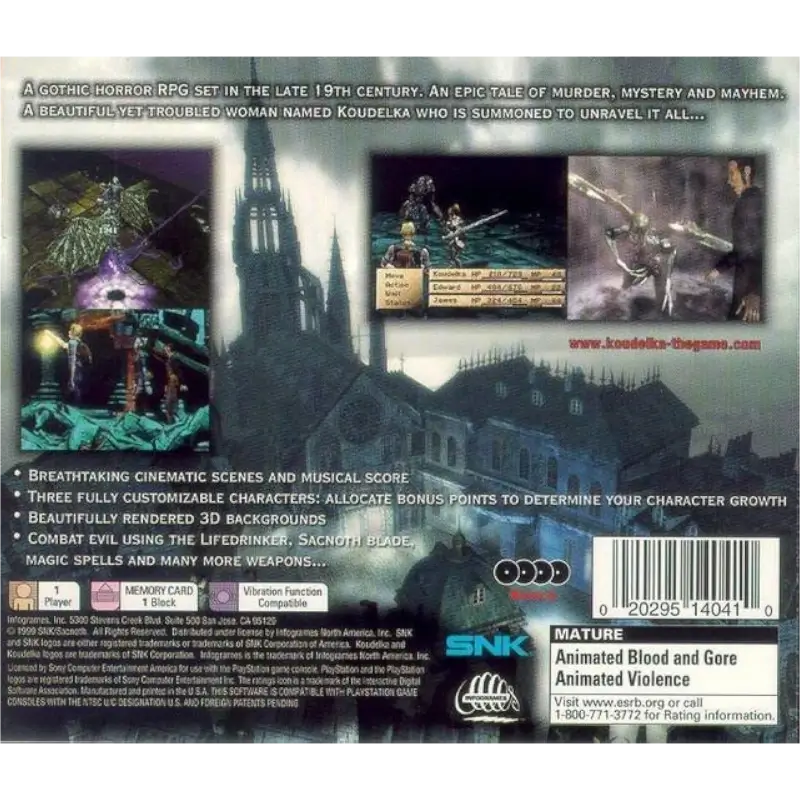 Koudelka é um jogo de role-playing com elementos de horror de sobrevivência. Os jogadores assumem o papel de Koudelka enquanto ela explora o mosteiro, recolhendo pistas e resolvendo puzzles. Este aspecto da jogabilidade é, portanto, semelhante a um jogo de survival horror; contudo, o combate é estratégico e baseado em turnos. Durante as batalhas, os jogadores podem posicionar e mover livremente os membros do partido no campo de batalha. A quantidade de acções que podem ser realizadas durante um turno depende da destreza da personagem. Há também vários feitiços de apoio e ataque a lançar.
