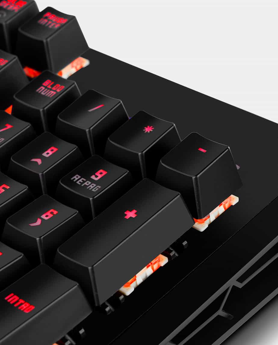O teclado Kempo possui interruptores mecânicos que lhe oferecem uma experiência única, aumentando a capacidade de resposta, feedback e precisão quando confrontados com o inimigo. Além disso, tem também um descanso de pulso retrátil para descansar as mãos durante longas e intensas sessões de jogo.