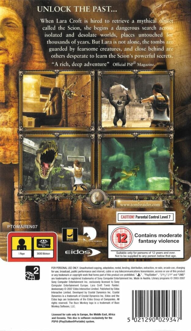 Lara Croft Tomb Raider: Aniversário é um remake do Tomb Raider original com um motor gráfico tecnicamente mais avançado. Tem o mesmo enredo básico, embora algumas cutscenes e grande parte do diálogo interno tenham sido expandidos ou modificados de outras formas. Os locais correspondem aos da versão original e são acedidos na mesma ordem, mas foram redesenhados com layouts diferentes e, na maioria dos casos, com puzzles completamente diferentes que permitem a implementação de novos movimentos introduzidos em Lara Croft Tomb Raider: Legenda: balançando em cordas e usando um gancho de agarrar em pontos específicos.