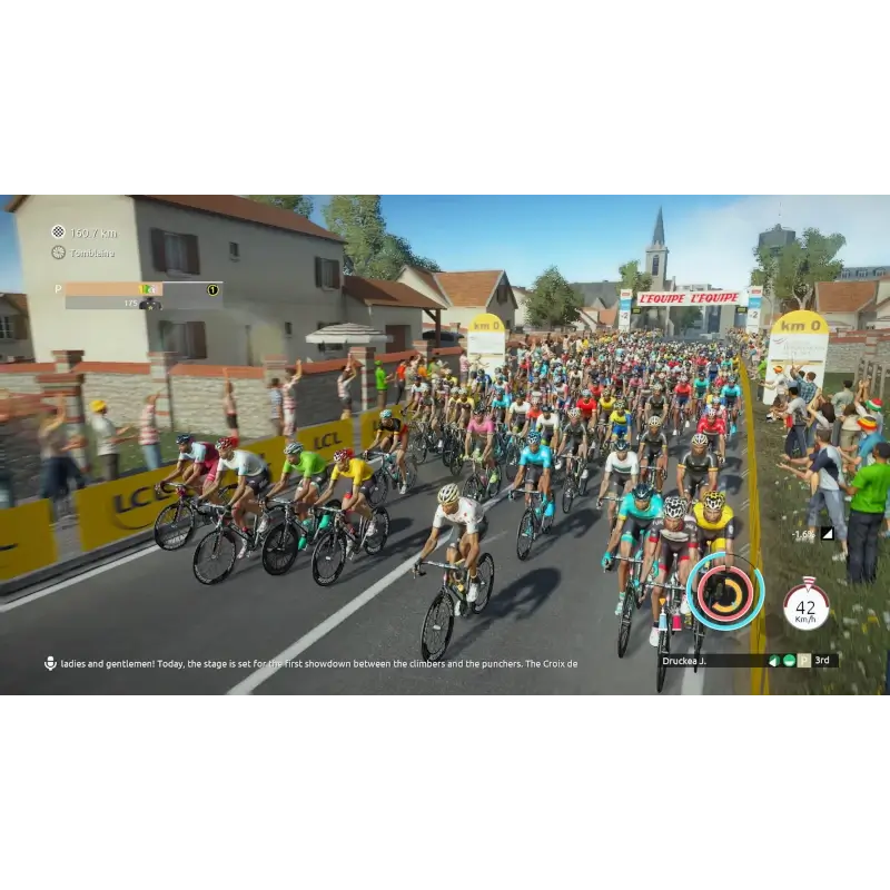 Nele, os jogadores assumem o papel de um ciclista profissional e competem ao longo das 21 etapas do Tour de France, enfrentando subidas íngremes, descidas velozes e momentos estratégicos cruciais.