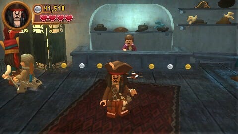 LEGO Piratas das Caraíbas: O Videojogo para plataformas portáteis é semelhante ao jogo de consola, mas apresenta gráficos mais simples, menos e menores níveis com o seu próprio nível e design de puzzle, e um mecanismo de duelo único.