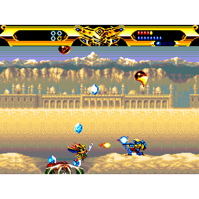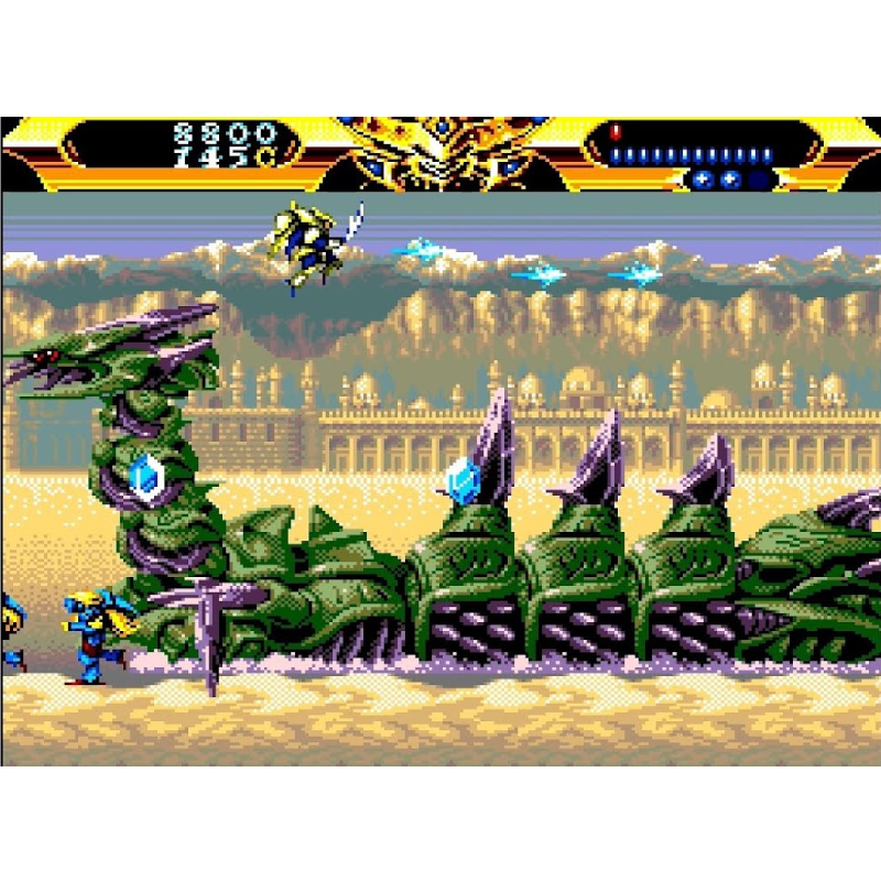 Os seis continentes de Mistral podem ser desafiados em qualquer ordem, cada um deles repleto de hordas de demônios e um dos generais das trevas de Sornbul. Depois de completar todos os seis continentes, o jogador enfrentará Sornbul na ilha final. Antes de um nível, o jogador pode escolher uma das quatro armaduras elementares, cada uma com sua própria distribuição de balas e bomba única. O ataque da armadura pode ser aumentado em vários níveis ao encontrar joias caídas pelos inimigos. Este nível de poder, assim como a saúde da armadura, é reduzido quando atingido. Os inimigos também deixam cair cristais que são usados em uma loja entre os níveis para comprar saúde adicional, bombas e continua.