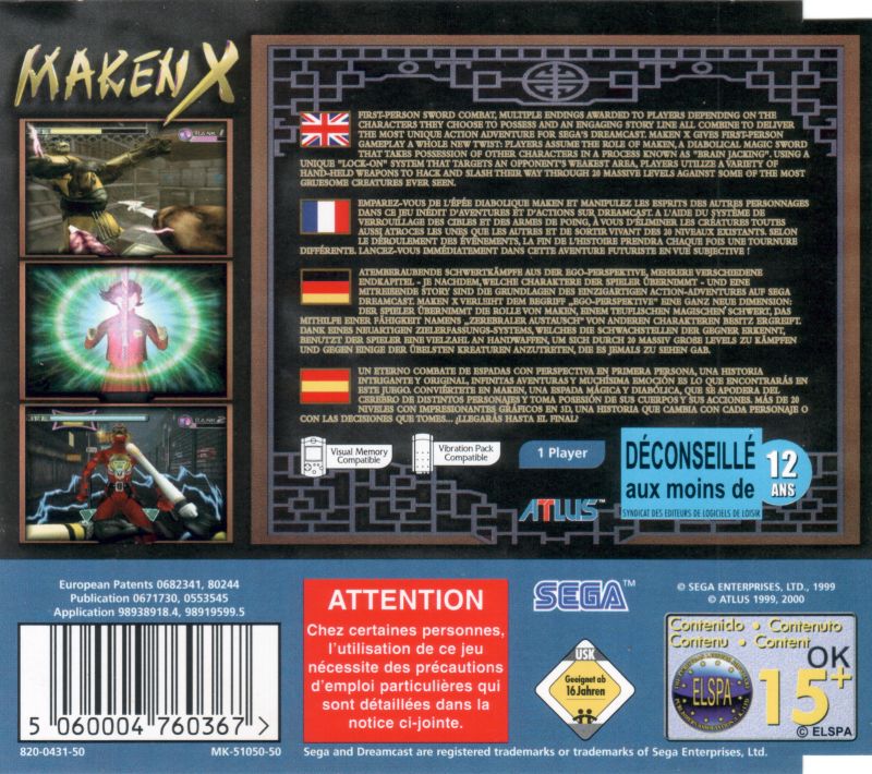 Maken X é uma espada – uma “Soul Sword” que possui uma habilidade única chamada brainjacking. Pode tomar conta da mente e do corpo de outra criatura e adaptar todas as suas forças e fraquezas. Maken X é também o herói do jogo – um espírito mutante vagueante da espada. A capacidade de manipular a “psi”, ou alma de uma pessoa, foi descoberta num laboratório de investigação. O cientista chefe é raptado por terroristas e a sua filha Kay desperta Maken X, que agora deve ajudá-la na sua perigosa missão.