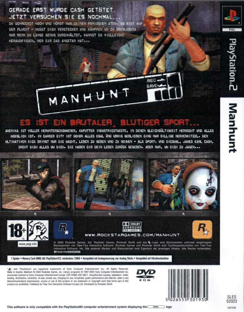 ManHunt PS2 é uma série de jogos de vídeo de ação, furto e sobrevivência horrorosa. É criado principalmente pela Rockstar North e é distribuído pela Rockstar Games.
