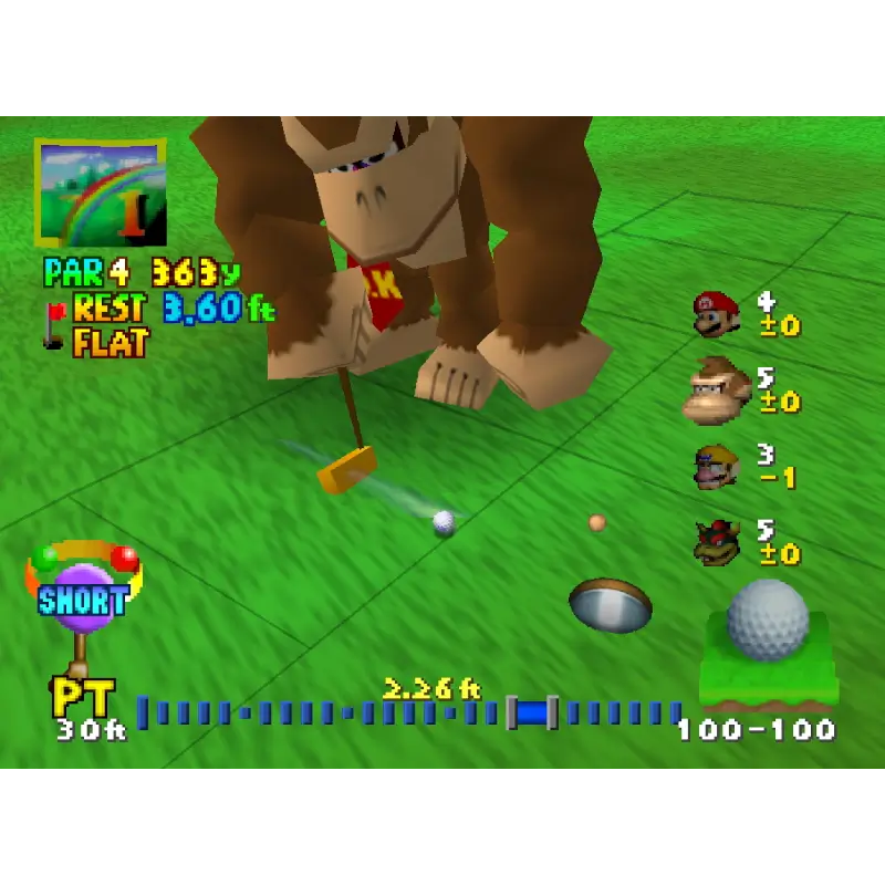 Além do modo para um jogador, Mario Golf brilha também no multijogador, permitindo até quatro pessoas competirem entre si, o que proporciona horas de diversão em grupo. Com modos de jogo variados, como torneios, desafios de tacada única e minijogos, o título oferece uma experiência rica e duradoura.