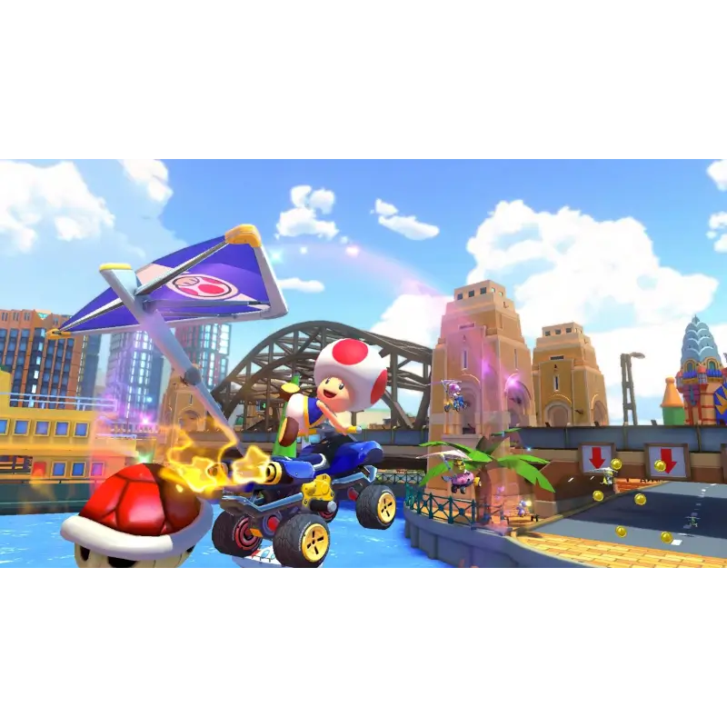 Trata-se de uma versão melhorada e expandida de Mario Kart 8, originalmente lançado para a Wii U. Neste título, os jogadores competem em corridas frenéticas e coloridas com personagens icónicos do universo Mario, como Mario, Luigi, Peach, Bowser, entre muitos outros. Cada personagem pode ser personalizado com diferentes karts, rodas e asas-delta, afetando a velocidade, aceleração e manobrabilidade nas pistas.
