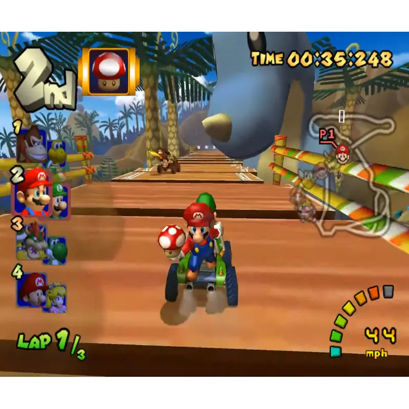 Com uma banda sonora energética e uma seleção diversificada de personagens do mundo de Mario, Mario Kart Double Dash!! tornou-se um clássico da consola e é amplamente lembrado como um dos jogos mais divertidos e únicos da série.