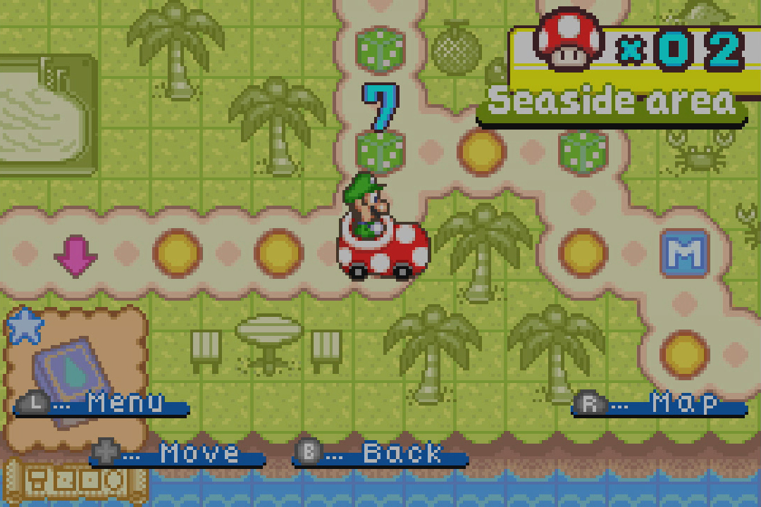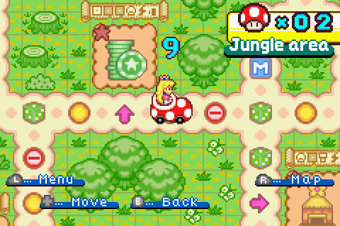 Finalmente, há também uma funcionalidade chamada “Bonus Board”. Pode jogar com um tabuleiro que está incluído no jogo usando o GBA. O GBA cuida dos rolos de dados, minijogos, e eventos de fim de jogo.