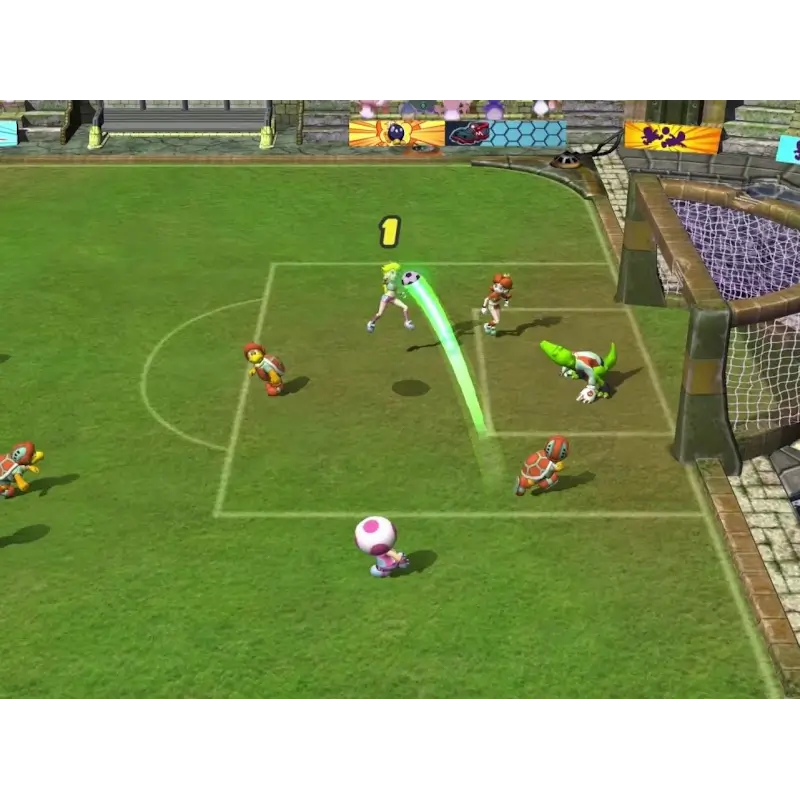 Cada equipa é composta por um capitão — como Mario, Luigi, Peach, Bowser ou Donkey Kong — e três ajudantes iguais (Toads, Hammer Bros., Koopas, entre outros), além de um guarda-redes automático chamado Kritter. Os capitães podem executar remates especiais chamados “super remates”, que têm a capacidade de marcar dois golos de uma só vez, tornando-se uma arma poderosa e estratégica.