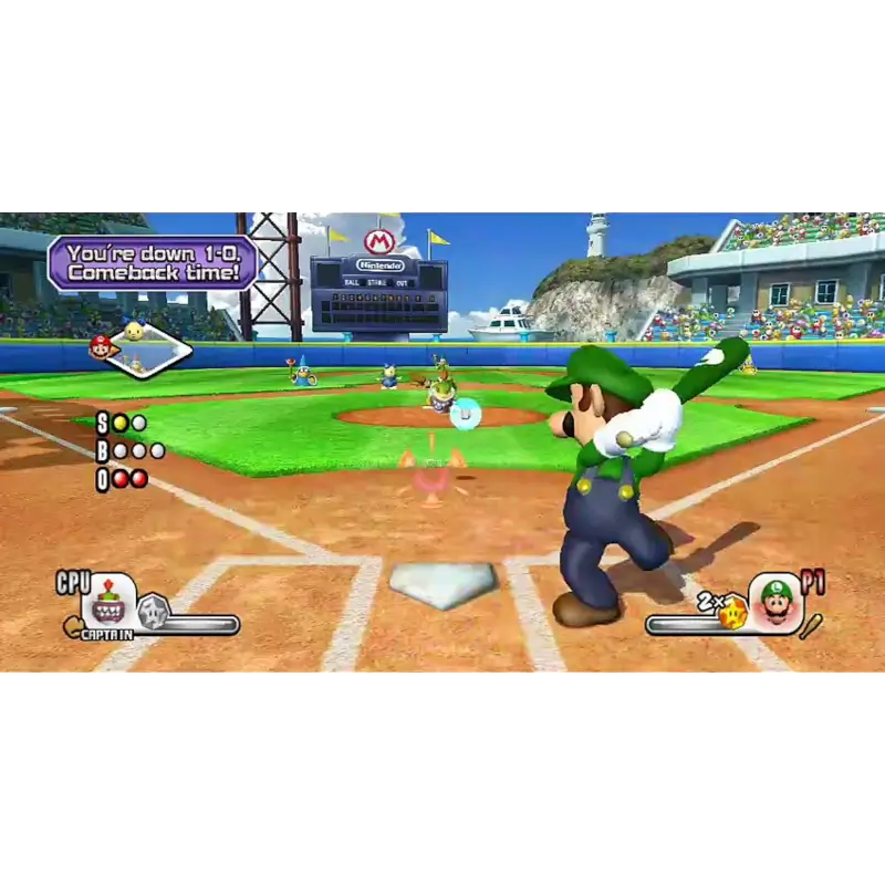 Neste título, o jogador pode escolher entre dezenas de personagens icónicas do mundo do Mario, como Mario, Luigi, Peach, Bowser, Yoshi, entre muitos outros, cada um com as suas habilidades únicas que influenciam o desempenho em campo. O jogo combina as regras básicas do beisebol com elementos arcade e poderes especiais, como lançamentos com efeitos mágicos e corridas supersónicas, tornando os jogos imprevisíveis e entusiasmantes.