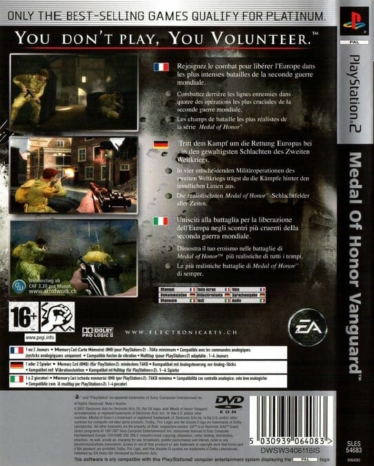 Em Medalha de Honra: Os jogadores de idiomas jogam como o Cabo Frank Keegan da 82ª Divisão Airborn durante a Segunda Guerra Mundial. Ele foi deixado atrás das linhas inimigas e precisa de completar várias missões em Itália, França, Holanda e Alemanha. Ele luta ao lado de colegas da IA, a fim de libertar a Europa.