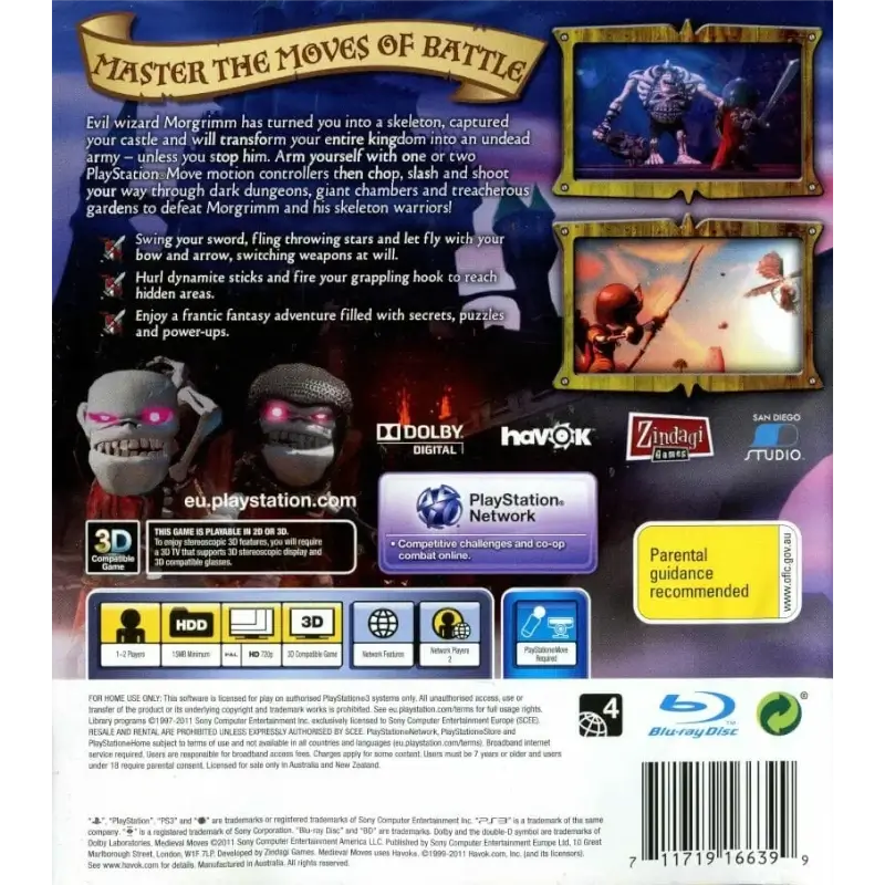 O grande destaque do jogo é o seu combate baseado em movimentos corporais, aproveitando a tecnologia PlayStation Move para executar ataques com espadas, magias e escudos, criando uma experiência imersiva e dinâmica. Medieval Moves PS3 também inclui puzzles, desafios de agilidade e exploração de diferentes ambientes, como castelos, masmorras e florestas, mantendo o ritmo de ação constante.