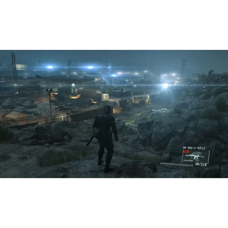A mudança mais importante para este título é a mudança para um design de mundo aberto com um ciclo diurno e noturno em tempo real, acabando com a abordagem de missão linear dos jogos anteriores. O protagonista é Big Boss (Snake) e o jogo se passa em 1975 após os eventos de Peace Walker. Snake trabalha com Militaires Sans Frontières e precisa se infiltrar em um acampamento negro americano, Camp Omega, em Cuba, onde o agente Cipher Paz e a criança soldado Chico, dois personagens que retornam do Peace Walker, são mantidos. Este é o único local do jogo e consiste em uma grande base com diferentes seções, pátios, latrinas e túneis de concreto, cercados por pedras e folhagens oferecendo muitos pontos de entrada. O jogo oferece o único objetivo de libertá-los e o jogador determina a abordagem. Para aumentar essa liberdade, ferramentas úteis de títulos anteriores, como o mapa de radar Soliton com os waypoints, foram removidas. Snake pode, no entanto, marcar os inimigos com seus binóculos para manter o controle do movimento. O minimapa foi substituído por um mapa acessado por meio de um dispositivo iDroid portátil, mas usá-lo não pausa o jogo. As funções do iDroid também podem ser acessadas por meio de um aplicativo complementar Adroid ou iOS em um dispositivo móvel real em conjunto com o jogo. Ele pode ser usado para definir pontos de passagem, verificar informações da missão e ouvir arquivos de áudio. Não existe mais um sistema de camuflagem. Em vez disso, as dicas precisam ser tiradas das oportunidades nos arredores e a hora do dia, com luz e sombra, também desempenham um papel. Embora o foco seja furtivo, o design da caixa de areia também oferece uma abordagem mais direta com armas e explosivos. Um flare pode ser usado para chamar um helicóptero, para suporte ou extração, e diferentes tipos de veículos como tanques, jipes e caminhões podem ser roubados e dirigidos.