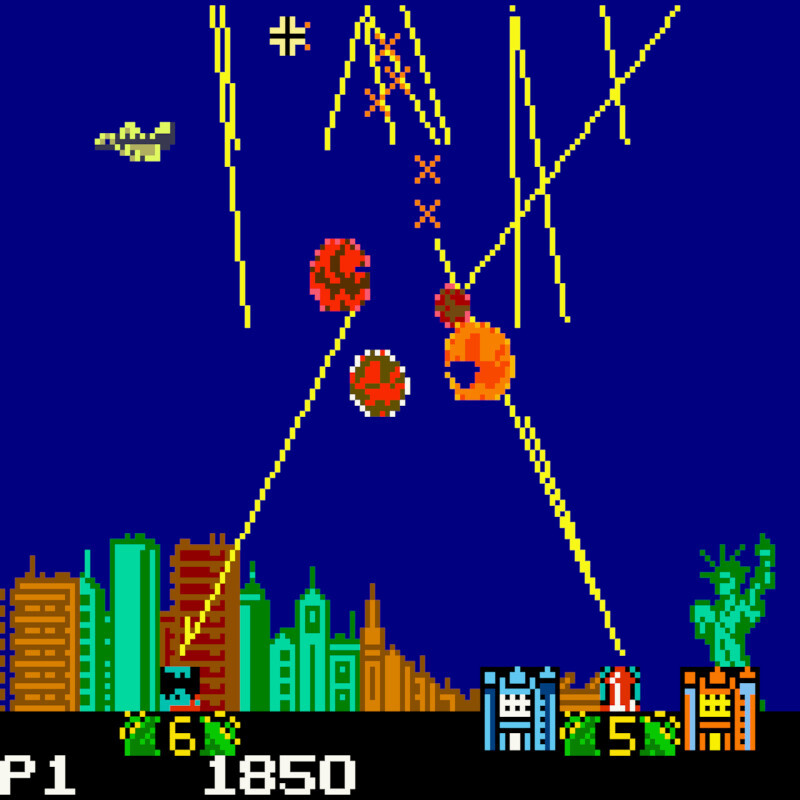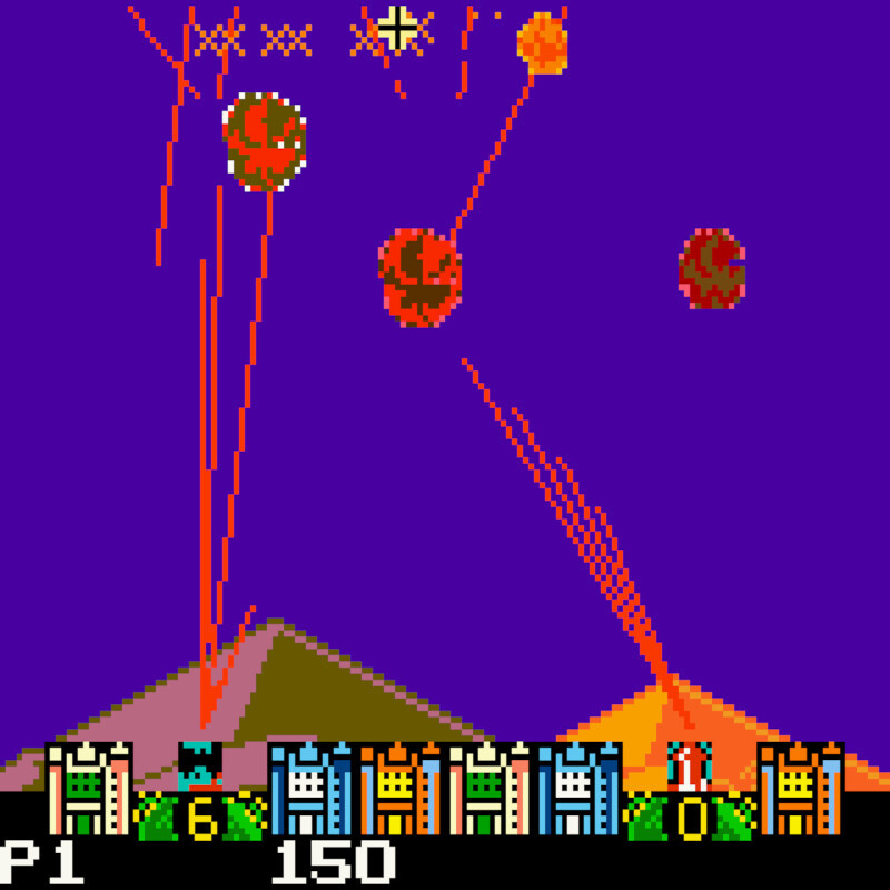 - Pontuação: Pontos são ganhos ao destruir mísseis inimigos e ao proteger cidades e bases.
