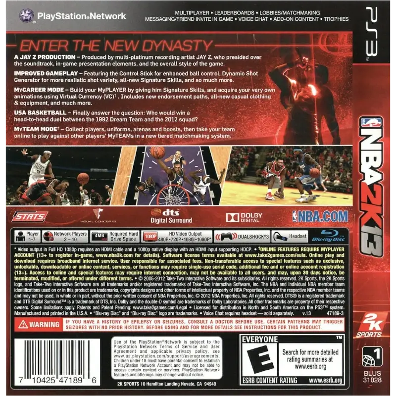 NBA 2K13 é um jogo de basquetebol com a licença oficial da temporada 2012/2013 da NBA. O jogador pode participar em jogos e ligas, incluindo o modo Associação (o jogador assume o papel de treinador, treinador e a equipa atual) e carreira (o jogador assume o controlo de um atleta e acompanha-o durante toda a sua carreira). As principais mudanças aqui são a opção de se sentar com o treinador geral, eventualmente a opção de criar sapatos Nike e que o sistema de pontos de experiência foi substituído por moeda virtual. A principal diferença é que a moeda virtual (utilizada para comprar novas habilidades para o atleta criado pelo jogador) é ganha com todas as ações de jogo e não apenas dentro do modo de carreira. As lendas do modo de jogo foram cortadas.