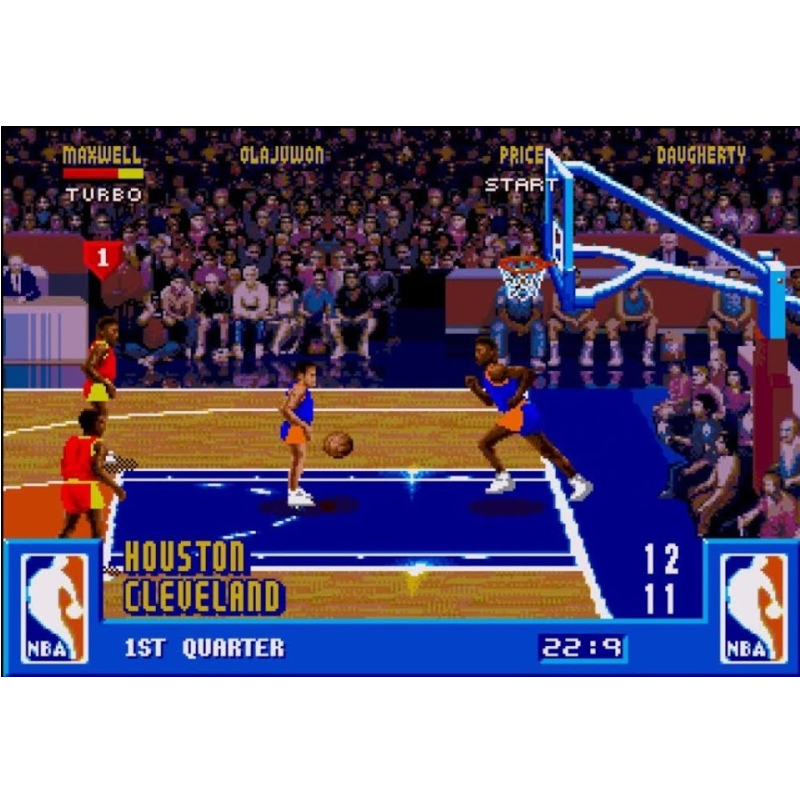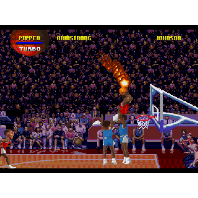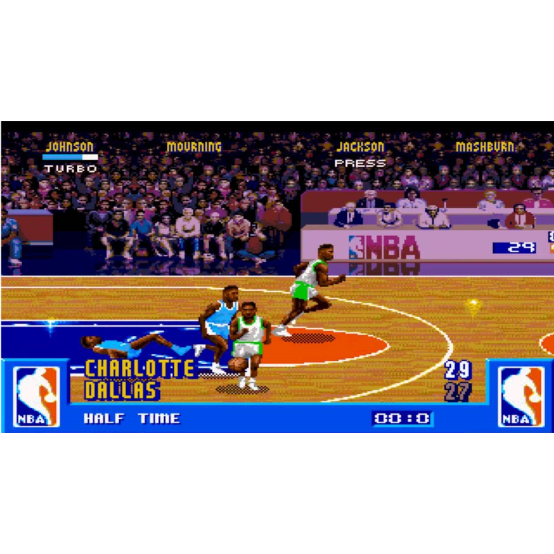 NBA Jam é um jogo de basquete dois contra dois. Você pode jogar com qualquer time da NBA e jogar com jogadores como Barkley, Starks, Pippen e Grant.