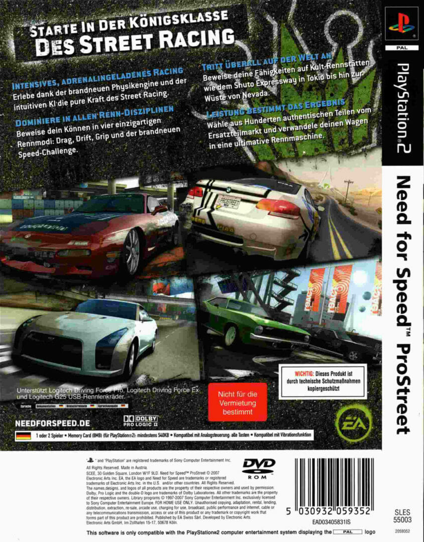 Necessidade de velocidade: ProStreet é o 11º jogo da série NFS. Não inclui apenas gráficos novos e mais detalhados, inclui um novo tipo de jogabilidade. O jogo não tem um modo Roam Livre (como no Underground 2, Most Wanted ou Carbono), mas tem um Mapa de Eventos, semelhante ao Calendário de Eventos da Juiced’s.