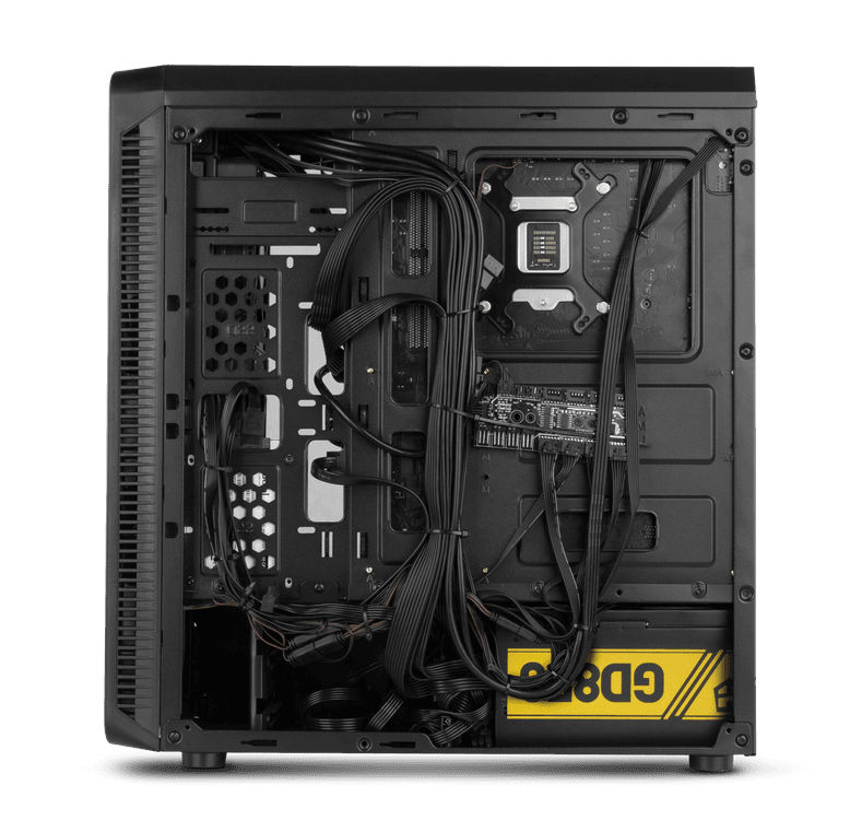 Graças ao seu excelente sistema de gestão de cabos (23 mm), poderá obter uma configuração limpa e arrumada.Na parte inferior, possui um compartimento isolado para montar a fonte e os discos rígidos, impedindo, portanto, a transferência de calor para os outros componentes. Também tem capacidade para instalar dois HDDs de 3,5 “na parte inferior e dois SSDs de 2,5” na lateral.