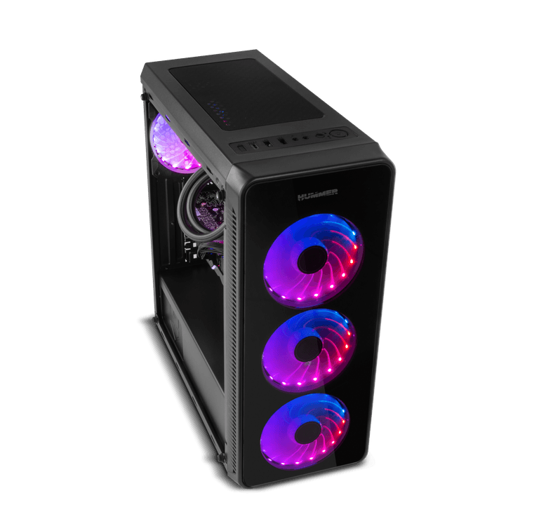 Um design robusto que brilha através de sua presença graças aos painéis frontais e laterais de vidro temperado que permitem a exibição do interior, sendo uma das principais atrações o espetáculo de luzes e movimentos das ventoinhas ARGB. A Hummer TGM coloca em destaque os acabamentos elegantes e o alto desempenho de uma das principais linhas de produto da Nox, a Hummer.