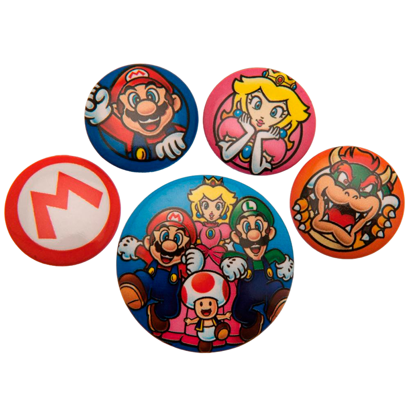 Com cinco designs diferentes, incluindo Mario, Luigi, Princesa Peach, Yoshi e Bowser, este pack é uma forma divertida e colorida de mostrar o seu amor por Super Mario.