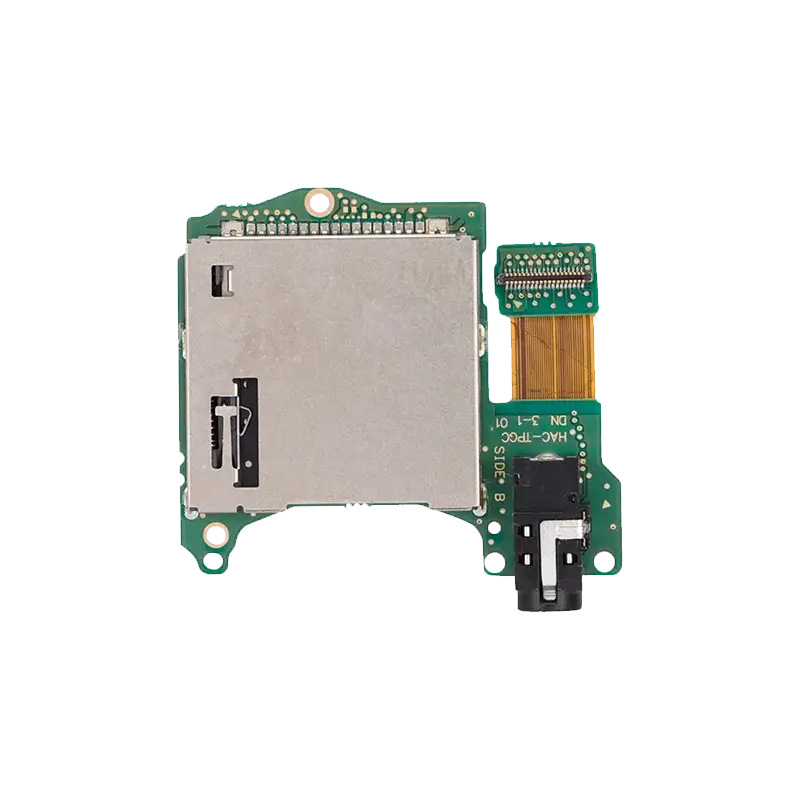O PCB Jack Áudio + Slot de Jogos NSW é um componente essencial para a substituição ou reparação de consolas Nintendo Switch, integrando tanto a entrada de áudio para auscultadores como o slot para os cartuchos de jogos.