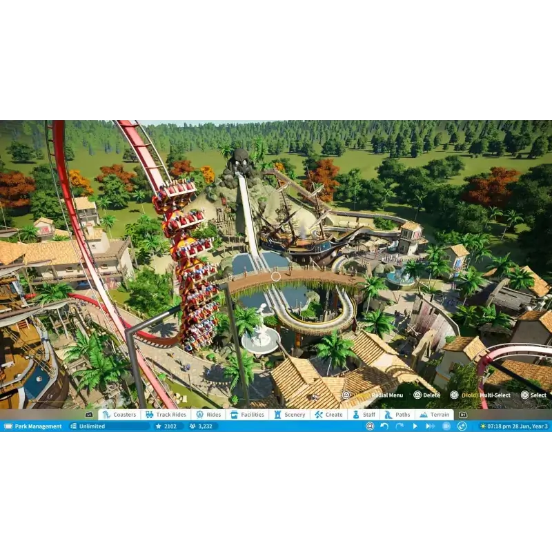 Uma grande parte do jogo baseia-se na concepção de passeios de montanha russa personalizados com base numa extensa quantidade de componentes, incluindo também efeitos especiais, personagens e veículos. Finalmente, existe também o próprio parque para conseguir atrair convidados e prestar serviços, assegurar que estes se mantenham felizes e gerir o pessoal e as finanças para assegurar que o parque seja rentável. A resposta dos hóspedes pode ser medida juntamente com a velocidade e a força G para alterar os passeios para os tornar mais excitantes ou para os tonificar mais baixos. Cada edifício ou serviço do jogo pode ser concebido de uma forma personalizada, também para lojas de bilheteiras, por exemplo. Os jogadores também têm a capacidade de partilhar os passeios, cenários e parques completos que construíram com outros jogadores como plantas, utilizando o sistema de Oficina de Vapor.