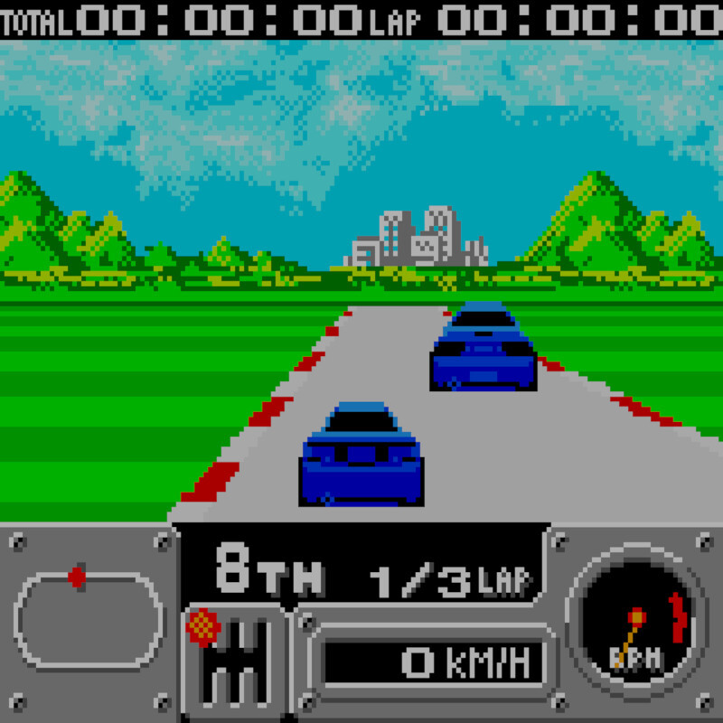 Os gráficos e a trilha sonora seguem o estilo nostálgico dos jogos de 8 e 16 bits, com músicas animadas e efeitos sonoros simples, mas eficientes. É um título voltado para os fãs de corrida que buscam algo descomplicado, mas envolvente no portátil.
