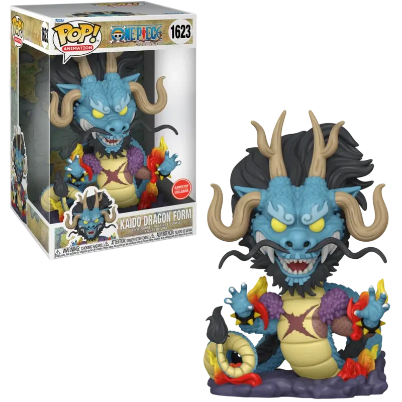 Esta figura de vinil, produzida pela Funko, captura a essência de Kaido com as suas escamas azuis brilhantes, cornos imponentes, olhos amarelos e a sua crina negra eriçada. A pose dinâmica da figura, com garras afiadas prontas para atacar, transmite a natureza selvagem e indomável de Kaido.